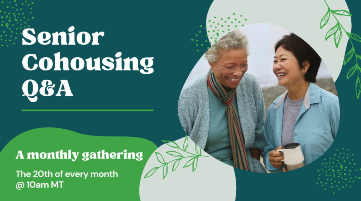 Want to learn more about what it’s like to build, join, and participate in cohousing as you age? The Seniors in Cohousing Committee will be facilitating an informal conversation for those interested in senior cohousing and/or senior living in intergenerational cohousing. This (free) event will take place every month on the 20th at 10am MT.