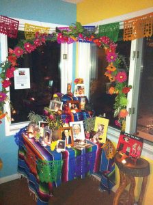 A painful conflict ensued. I set up the display in spite of the dissension from several community members and I take responsibility for my contribution to the escalation of the conflict. In the end, the display was beautiful (please see the photo) and the event was well attended by many adults and children. However, we have not had another Día de los Muertos, done in its original cultural context, in the Common House since.