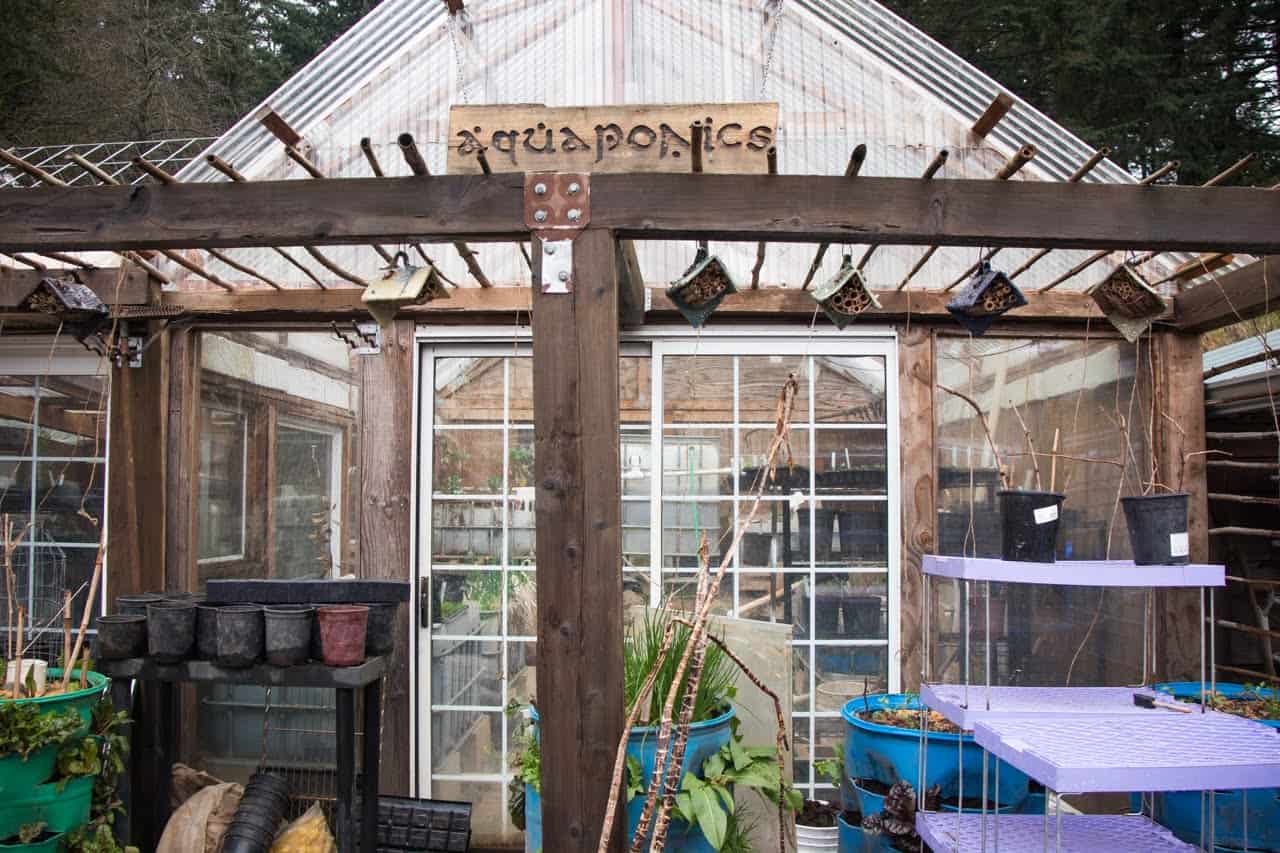 We have three large un/under-utilized areas available: The front hill is a terraced and amended south-facing slope that has LOTS of room and potential. We also have a poultry pasture is 2 acres of partially wooded Douglas Fir, an additional 4 acres of wooded mixed use browsing space and native habitat that’s virtually unused at the moment, two large greenhouses (including one set up aquaponically), and lots of space to expand the orchard and rotational grazing system.